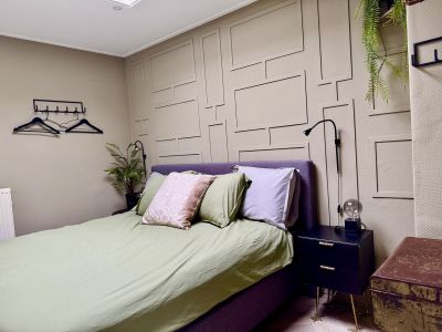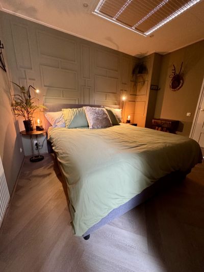 Vanaf €110 per nacht. Compact maar compleet: 60 m² gelijkvloers, een fijn boxspringbed, moderne badkamer en een gezellige leefruimte. Eigen ingang, gratis wifi en parkeren, plus een zonnig terras tussen het groen. Perfect om even helemaal op te laden in Klarenbeek.
